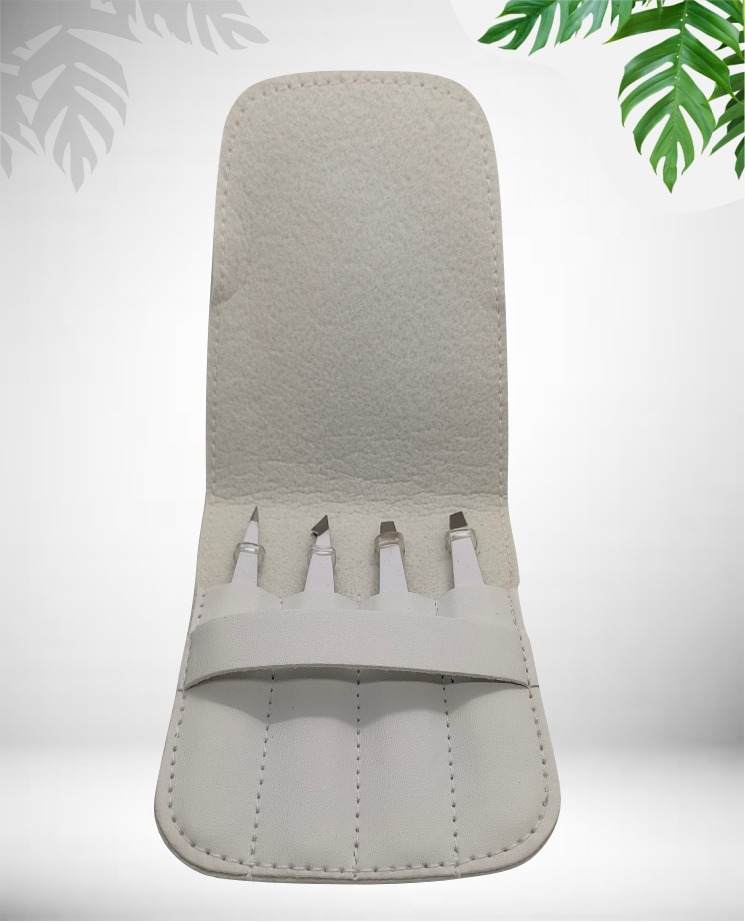 Made Of Surgical Grade Stainless Steel 4 Pcs Eyebrow Tweezers Set In White Color With White Pouch